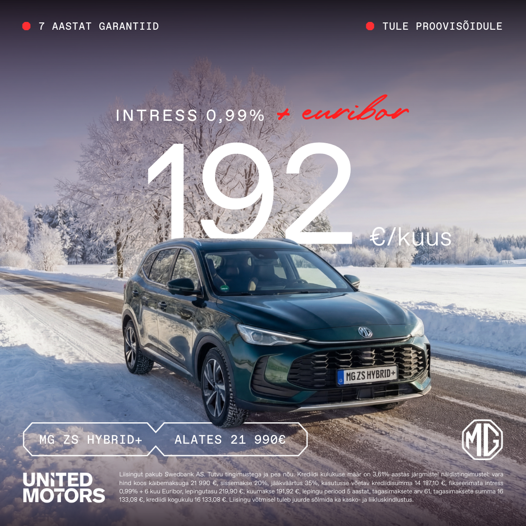 Avasta MG uue põlvkonna elektrifitseeritud mudelid – nüüd eriti soodsatel tingimustel, 0,99% + euribor soodusintressiga!
